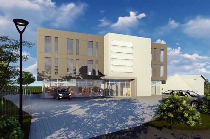 Na działce zaprojektowano obiekt o trzech kondygnacjach nadziemnych z garażem podziemnym, wyposażony w windę. Przewidziano łącznie 24 miejsca postojowe (10 na terenie, 14 w garażu).
